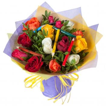 Очень милый букет поднимет настроение по любому поводу и без :) Состав Гербера - 9 шт. Роза пионовидная - 5 шт.