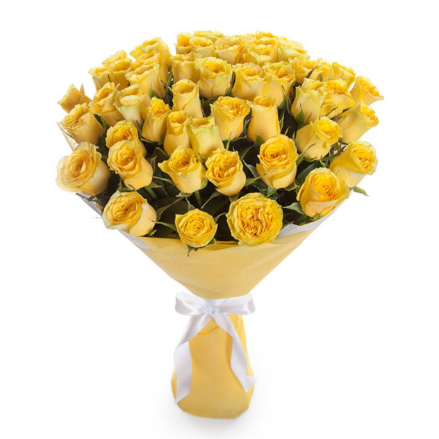 Состав: Упаковка (пленка с лентой), Упаковка для букета: фетр, Роза желтая 60 см 51шт.
